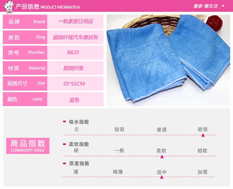 品牌:一帆 品名: 超细纤维汽车擦拭布 货号:8820 特点:加厚的超细纤维布,正面格子去污,反面平纹,抛光,两面共用,更实惠.