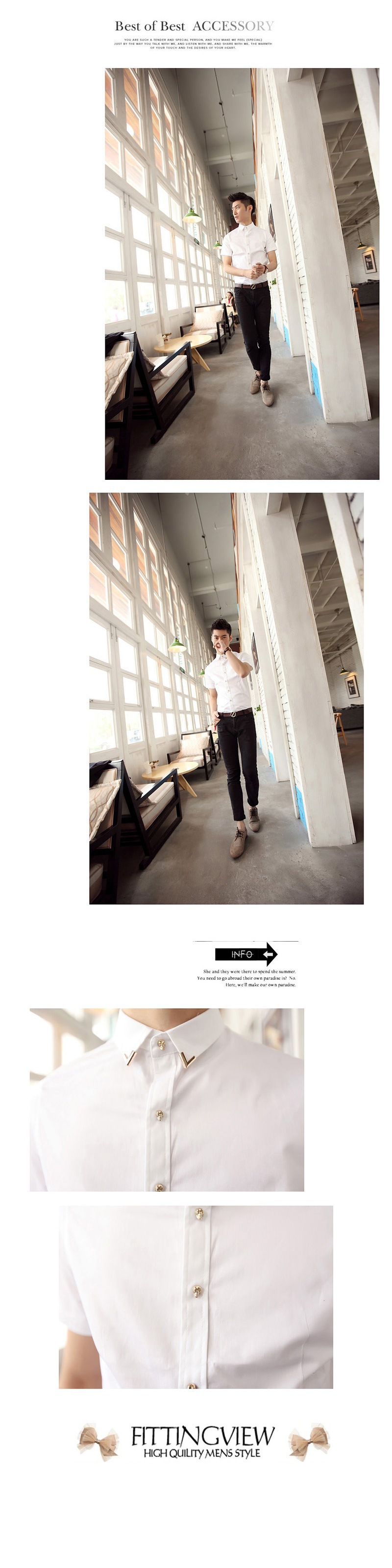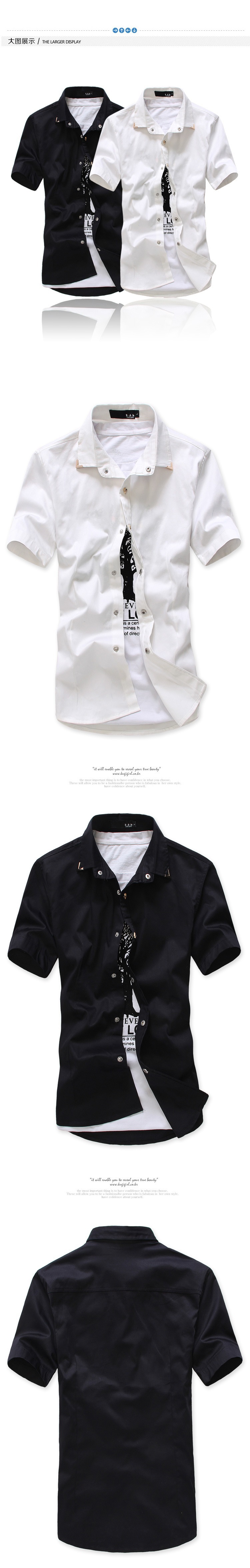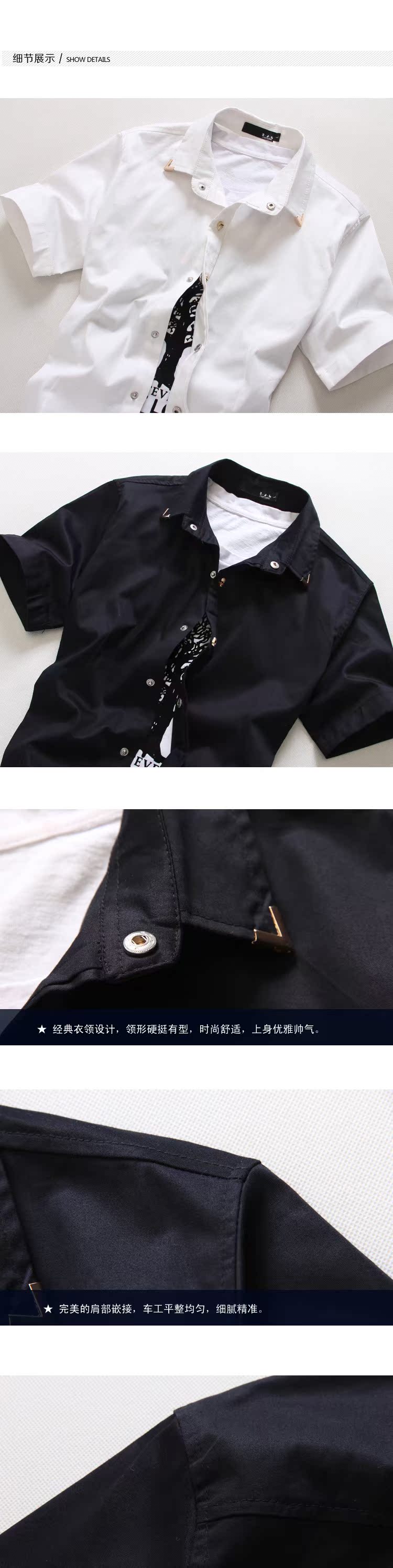 男士短袖衬衫批发 纯棉撞色拼接短袖衬衫 新款韩版修身衬衣男短袖