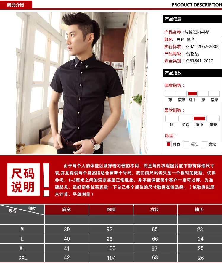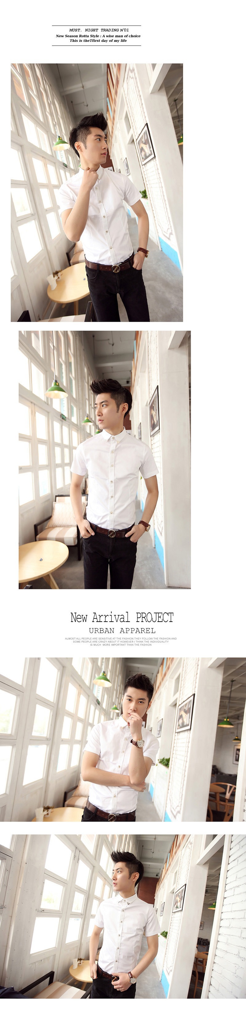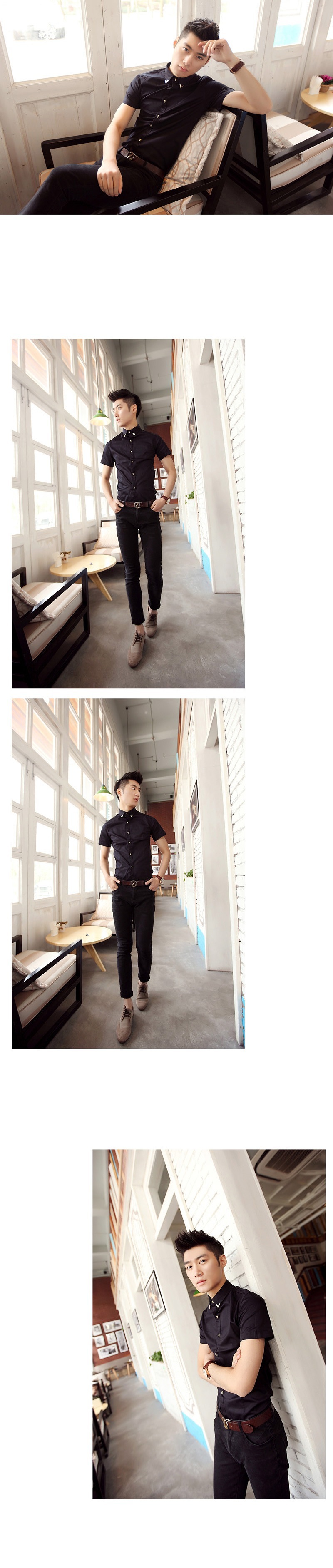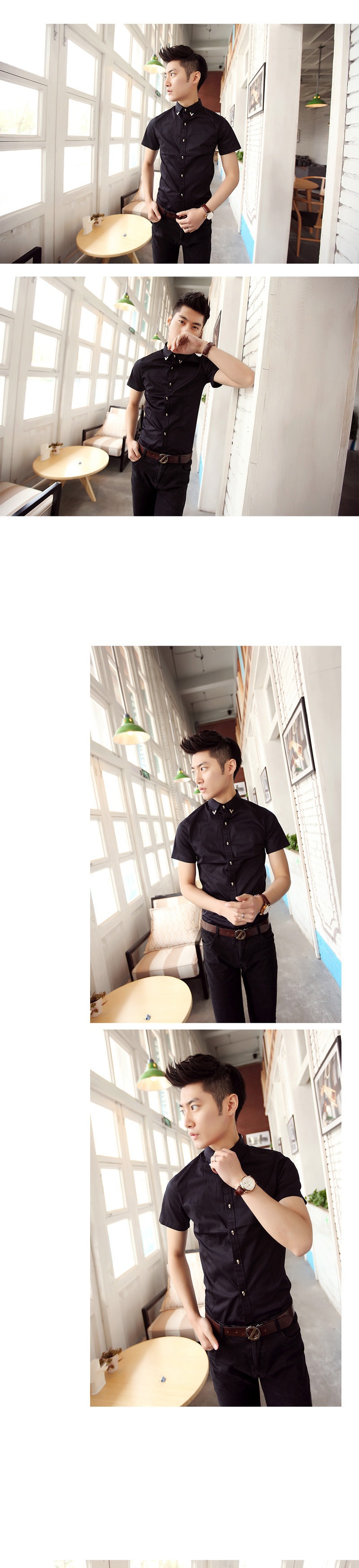 韩版修身衬衫厂家一件代发 韩版新款男士衬衫短袖 纯色短袖衬衫男