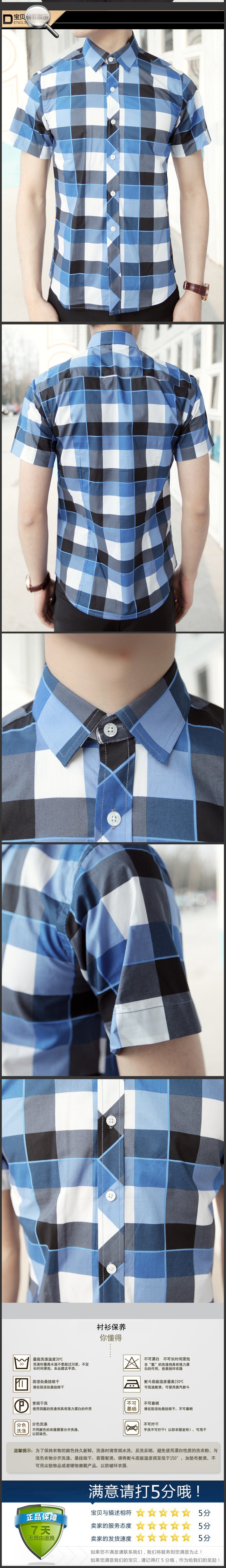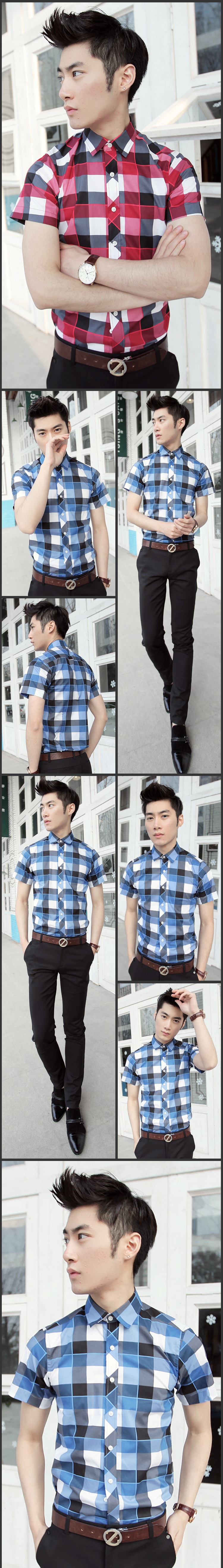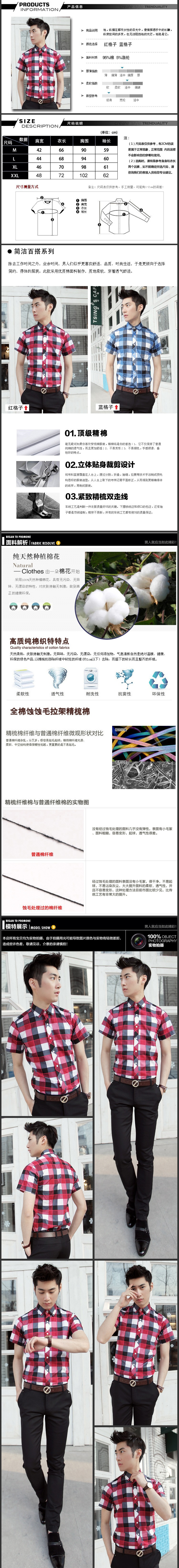 男装短袖衬衫批发 纯棉男式韩版修身衬衫 时尚休闲格子短袖衬衣