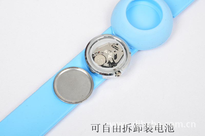 表壳:采用合金手表金属表盘,镶嵌在弹性硅胶制成的表带中,采用无扣设计,只需轻轻一拍即刻把时尚带走,既是潮流物亦是手表的创新设计概念!