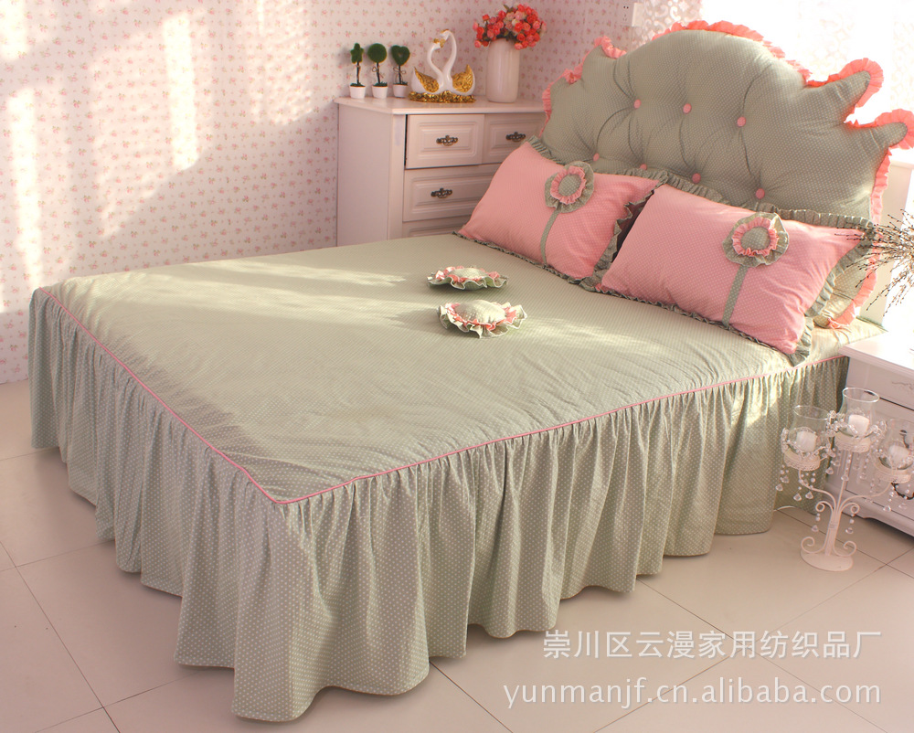【产品面料】100%全棉,款式新颖,做工精致,浪漫唯美的优质床裙4件套,采用环保斜纹全棉印花布做面料,整体图案设计搭配新颖,花样独特,颜色清新柔和。面料细腻而富有韧性,柔软舒适,手感细腻,使用舒适、吸湿透气,好舒服哦。色牢度高并且使用环保染料,面料缩水率均达到国家标准,不起球。可100%放心使用!