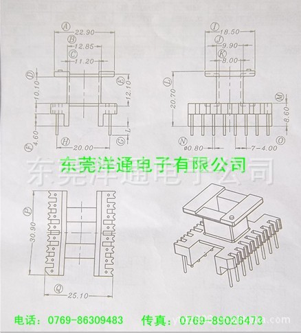 磁芯骨架EI28 立式8+8 bobbin YT-2815 尺寸图