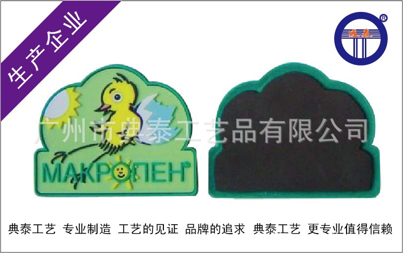 采用进口的环保原材料,通过SGS专业的检测机构检测认证,通过欧盟环保标准.此材料手感舒适,色泽艳丽,耐磨防水.可塑性强,可做2D平面,3D立体浮雕效果.可加印企业的logo,标志,各种卡通形象.是广告促销的理想产品.