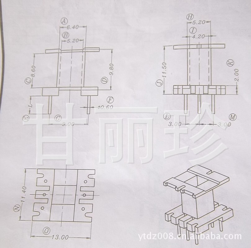 东莞洋通电子有限公司是专业生产和销售高频变压器磁芯、骨架、磁环、高导磁环、铁粉芯磁环,磁环勾针,勾头手柄,台钳,胶垫,三层绝缘线,高导磁环,贴片骨架,SMD BOBBIN,FERRITE CORE,SOFT CORE,BOBBIN,等电子材料的大型工厂,本公司于2000年06月建立于电子名镇--石碣镇;公司生产规模大,技术能力强,拥有一支技艺精湛的技术、管理人才。是一家专业从事电子变压器骨架,磁芯,磁环加工生产和服务于一体的股份制有限公司〔也可代客户开发设计各类精密模具〕。其中包括(å EEL EF EFD EP EPC EQ PQ POT RM UU UYF UI FT ET UT EER ERL ETD EI GU罐型等规格)