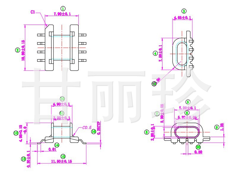 EPC10贴片骨架 SMD BOBBIN 4+4pin 尺寸图