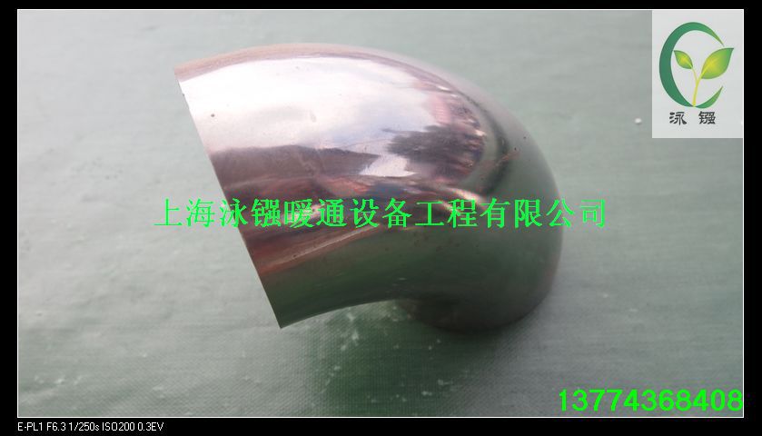 不锈钢弯头按标准制作可化为:国标、电标、水标、美标、德标、日标、俄标等。不锈钢弯头有45度、90度等、用于通风管道、工厂、酒店、厨房、新风、排风、有201 304 316 材质定做各种不同规格尺寸、