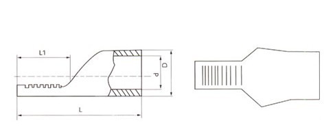 | 型号Type | D | d | L | L1 | | C45-10 | 7.5 | 5 | 34 | 13.5 | | C45-16 | 8.5 | 6 | 35 | 14 | | C45-25 | 10 | 7 | 36 | 14.5 | | C45-35 | 11 | 8 | 37 | 15 | | C45-50 | 13 | 10 | 41 | 15.5 | | C45-70 | 16 | 12 | 45 | 16 | | C45-95 | 18 | 14 | 50 | 18 | | C45-120 | 20 | 15 | 57 | 20 | | C45-150 | 22 | 17 | 67 | 24 | | C45-185 | 24 | 19 | 77 | 28 | | C45-240 | 26 | 21 | 85 | 31 |