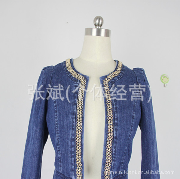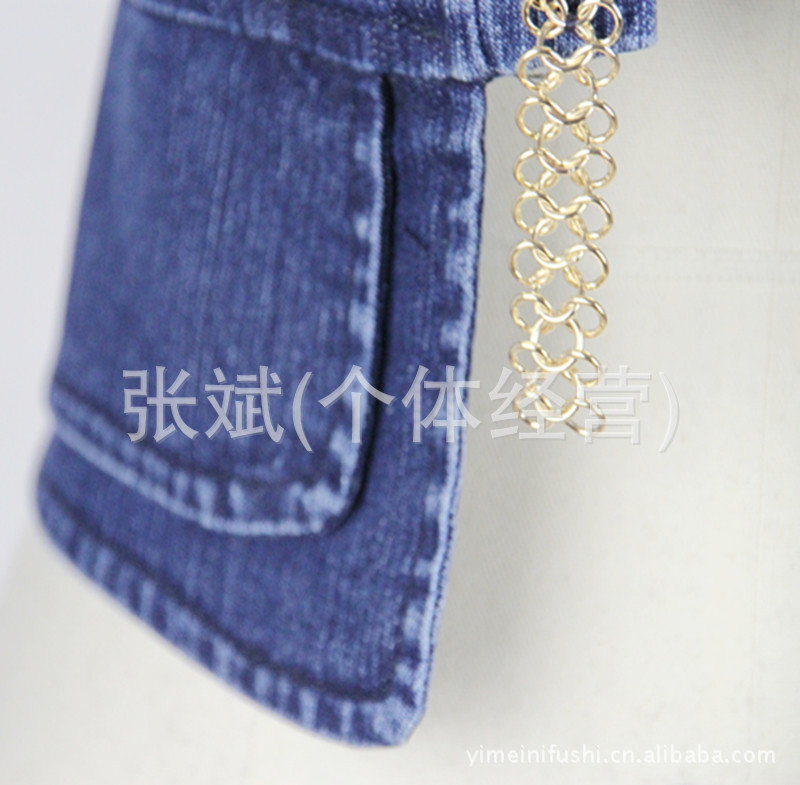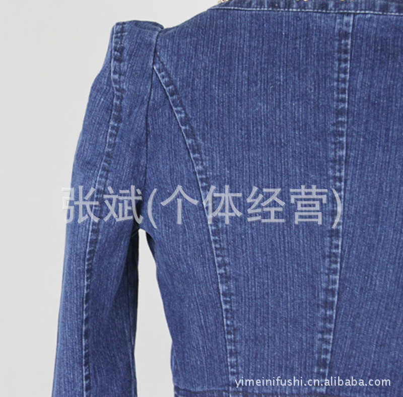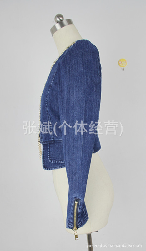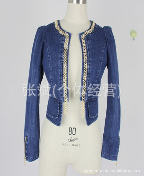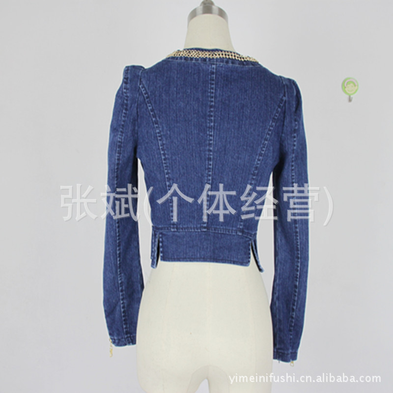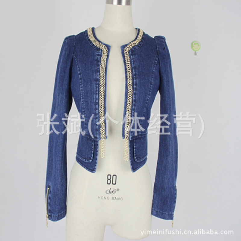 批发供应韩版修身长袖链条装饰女装牛仔外套