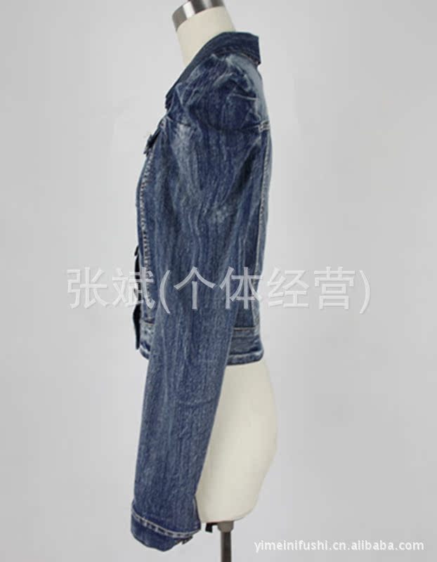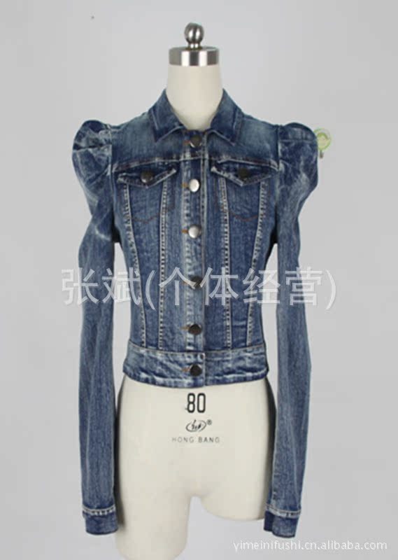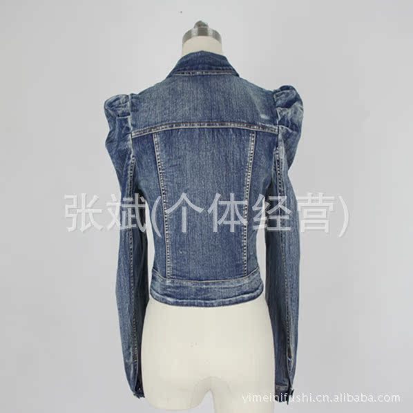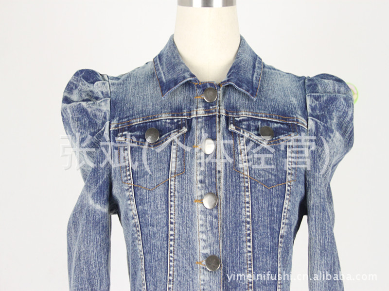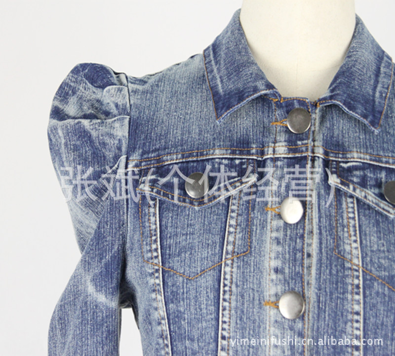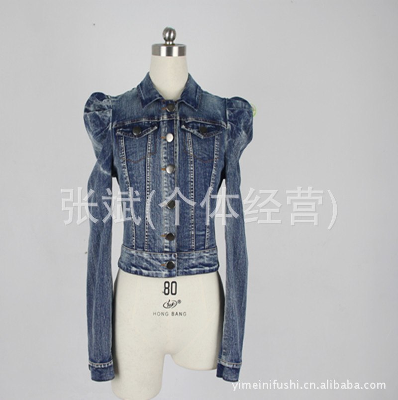 批发供应韩版修身牛仔女装纽扣牛仔泡泡袖长袖外套