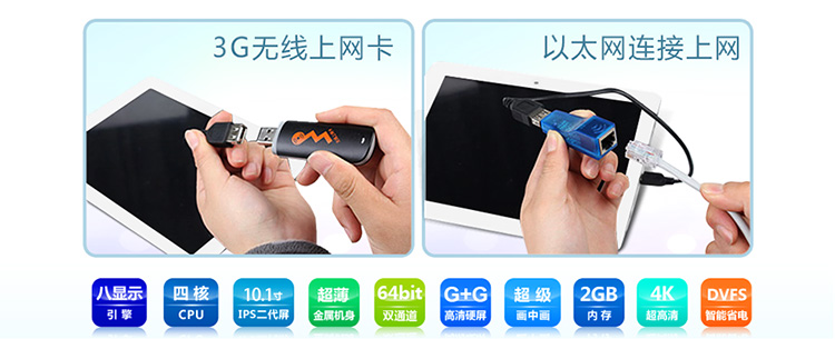 台电A11四核支持WiFi无线网络,并可通过USB连接有线网络、3G上网卡等设备。丰富的上网方式,让你能时刻保持在线。