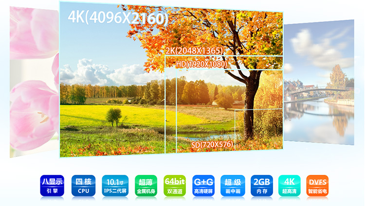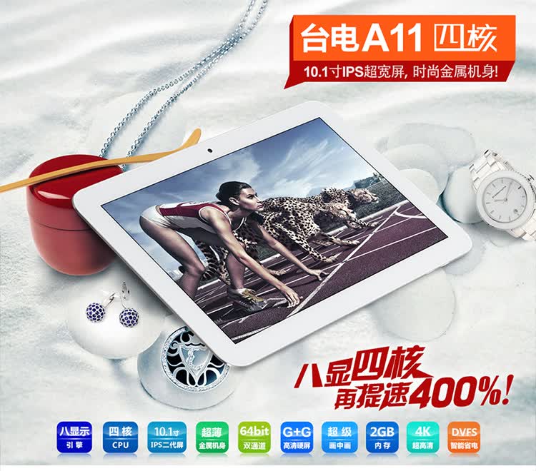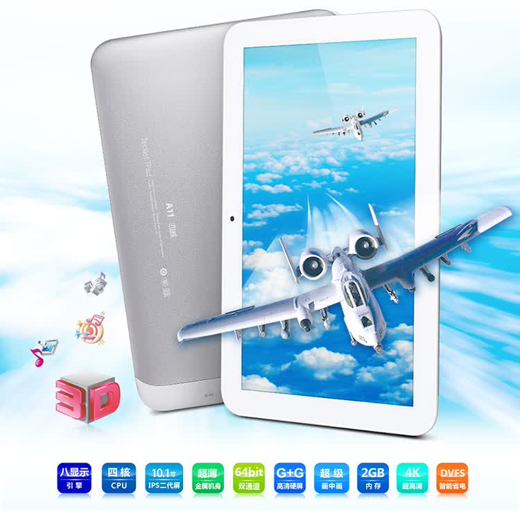台电A11四核支持最高清的4K数字电影解码及输出,分辨率高达4096×2304,是主流1080P(1920×1080分辨率)电影清晰度的4倍之多,可以直接播放蓝光3D电影,拥有最强的平板电脑视频解码功能,还支持双屏显示无线输出到超大屏电视或投影仪,通过内置独立的音频CODEC,HIFI音频输出,与家人朋友一同享受顶级影音乐趣。