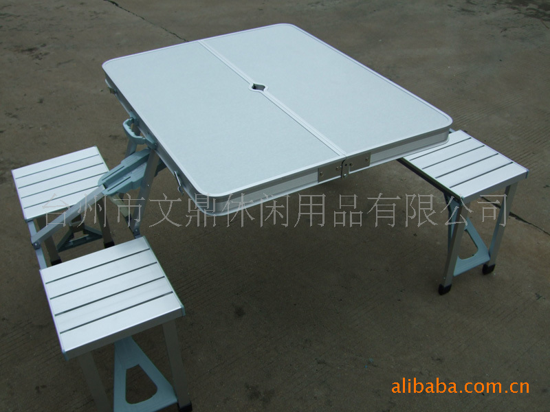 该产品是引时国外最新设计,采用高级合成材料和铝合金材料制造。 具有设计新颖,折叠方便/重量轻/易携带/不怕日晒雨淋/美观实用的特点。 广泛适用于旅行/户外活动/家居/露台/花园布置。是现代生活用具的新产品。 无论野餐、朋友聚会、户外展示活动,都是您最佳的选择。本产品质量有保证, 在完全展开的情况下桌面人可以座在上面,不会坏, 可折叠野餐桌(沙滩桌) 展开尺寸:长85.5×宽135×高66CM 桌面尺寸:长85.5×宽65×高66CM 椅面尺寸:长30×宽27×高40CM 材料: 高级合成材料防火板加厚桌面铝合金加厚椅面,铝管,铁管 铝管厚度:0.6-0.7MM 铁管厚度:19.1MM