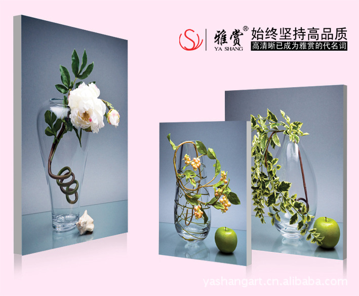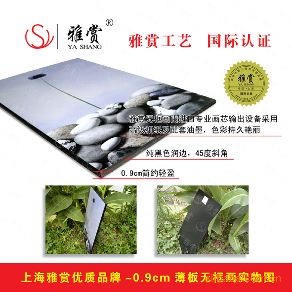 上海雅赏工艺品有限公司做为一家专业设计、生产、销售家居装饰画的国内企业,自创品牌初就本着高起点,高要求的发展目标,经过多年的奋斗拼博,凭借国际一流的生产设备和技术,精湛的生产工艺,卓越的产品品质,完善的售后服务,成为行业的佼佼者,多年来对行业高度专注精神和产品创新理念,积淀了雅赏的品牌文化,以客为本,服务为先的经营理念,以呈献优质环保产品,为客户提供卓越的产品和服务为企业使命,弘扬装饰艺术文化,正是这些追求创新的企业文化推动着雅赏在不断前行,雅赏,从材料的精心挑选到细致的做工,直到最后的包装都用心把关,产品合格才能出厂,无可挑剔的细节处理和始终如一的高品质,使品牌在激烈的市场竞争中迅速崛起,成为现在高档住宅、酒店、宾馆、企业及事业单位的无框装饰画首选!雅赏无框画,中国无框装饰画第一品牌!