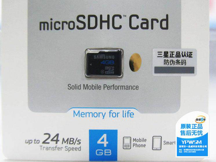 新款三星TF 4G 24M/s Class4 Micro SD i9100手机内存卡正品