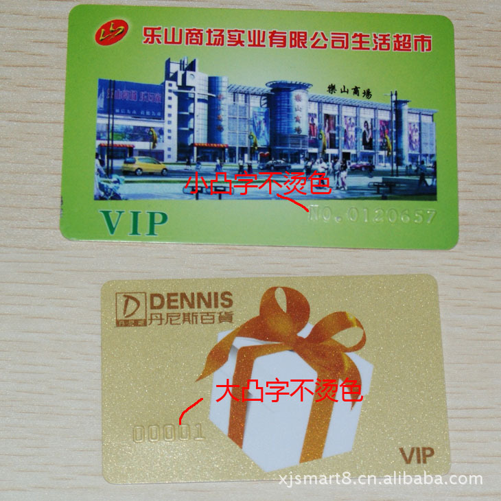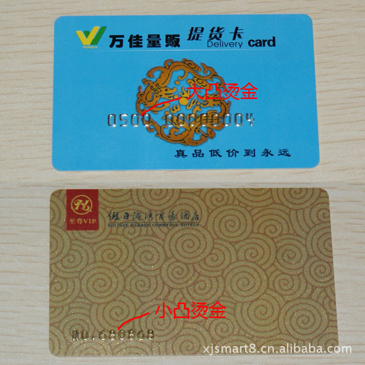 3.小凸码为12号字体,大凸码为18号字体,可用黑体表示,小凸码和大凸码包含空格最多只能19位。凸码可以烫金烫银或者其他金银,特殊要求可以做个性凸码。 会员卡