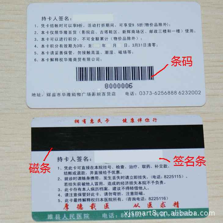 5.磁条卡:凸码设计的位置不要压到背面的磁卡否则磁条将无法刷卡。