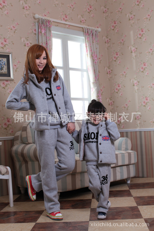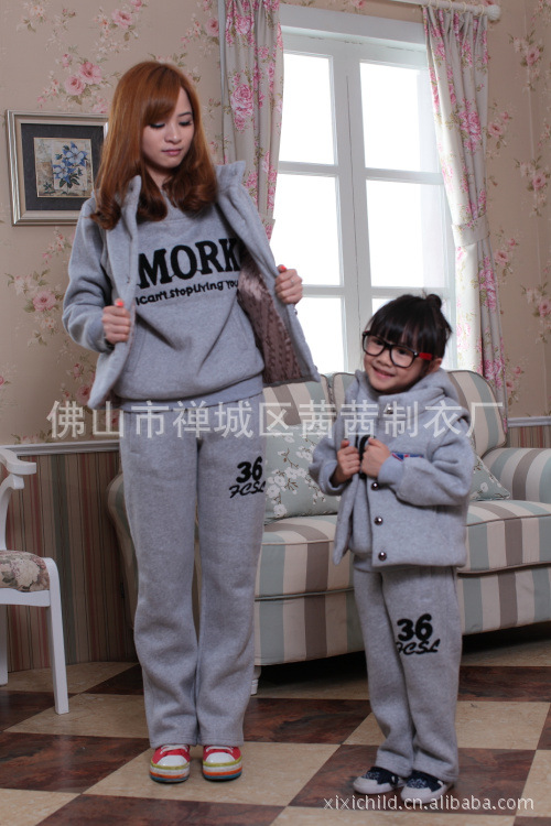 天鹅绒亲子装批发 皇冠刺绣套装 天鹅绒套装 2012新款秋款 妈妈款