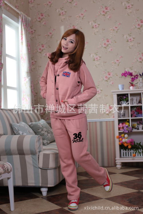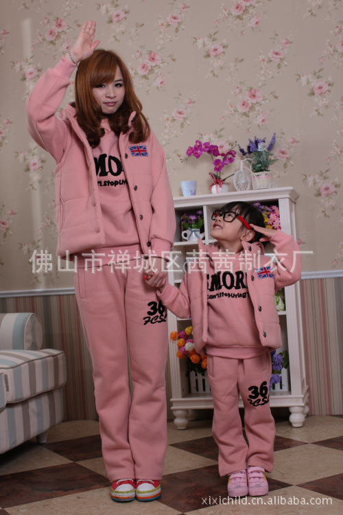 厂家直销 2012 韩版爆款天鹅绒PINK运动套装亲子装/母女装 宝宝款