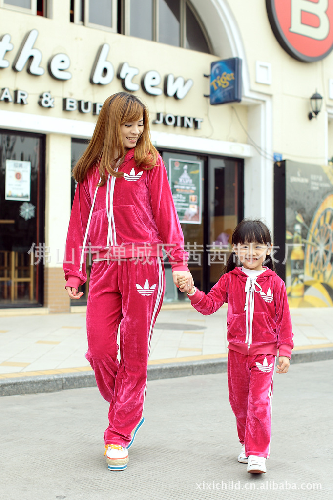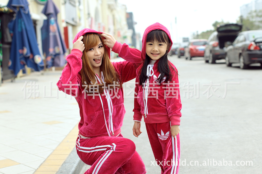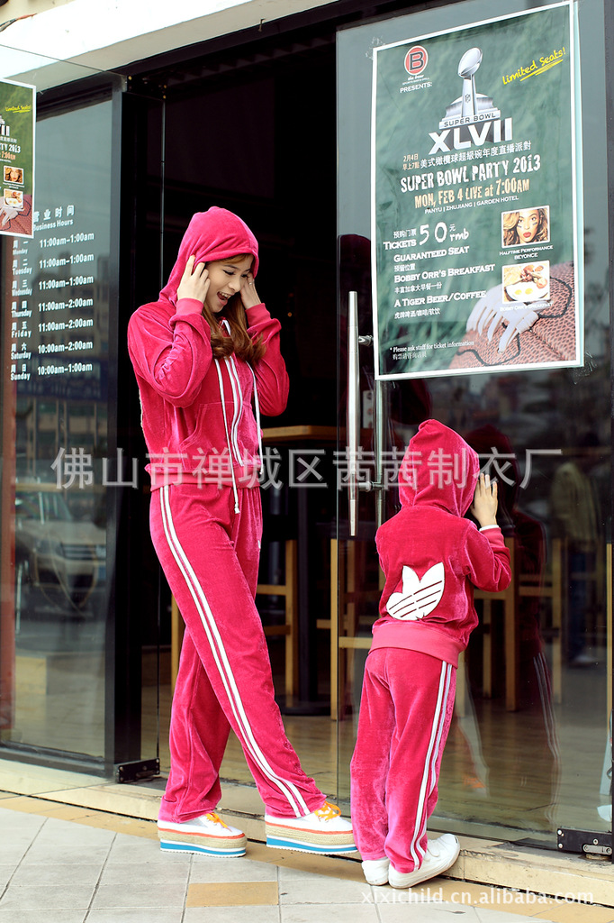 厂家直销 2012 韩版爆款天鹅绒PINK运动套装亲子装/母女装 宝宝款