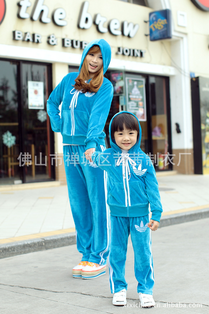 天鹅绒亲子装批发 皇冠刺绣套装 天鹅绒套装 2012新款秋款 妈妈款
