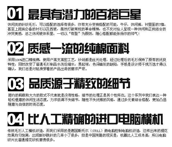 3:毛衣批发:大量毛衣现货批发,利用网络平台直接面向全国实体店店主、淘宝服装店主、大型B2B、B2C电商卖家提供毛衣批发(毛衣现货批发),质量上乘,价格合理。