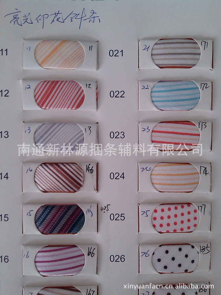 本公司是国内第一家专业从事斜条流行趋势研究的企业,也是国内第一家从事斜条自主研发的企业,部分产品见以下产品样卡图册,斜条尺寸可定制: