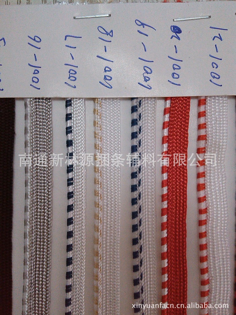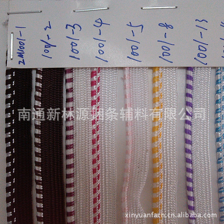 子母带:本款产品适用于各种家纺(被子、枕头/芯、床垫)、服装、车垫桌布等产品的嵌绳,是斜条包边条的第二代产品,使用方便,花色多样,用于家纺产品,增加档次,部分产品及花色参照下列图片及色卡