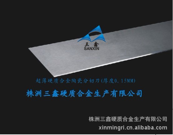 株洲三鑫硬质合金生产有限公司—硬质合金刀具专业生产厂家,专注钨钢刀具生产工艺每一个细节。我公司按照客户要求所生产的钨钢超薄刀片厚度0.1MM,该超薄刀片以超细颗粒优质碳化钨原料为基体,经过高精密加工设备精制而成,具有良好的韧性和使用寿命!