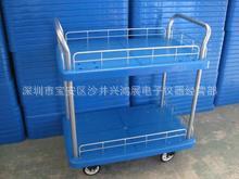 静音手推车由塑料车板、粉体涂装扶手(可折倒、固定)、静音脚轮(尼龙支架、铁板支架)等组成。