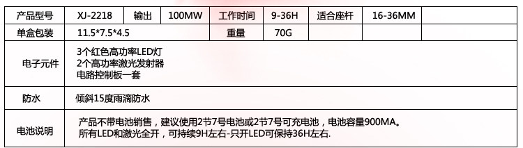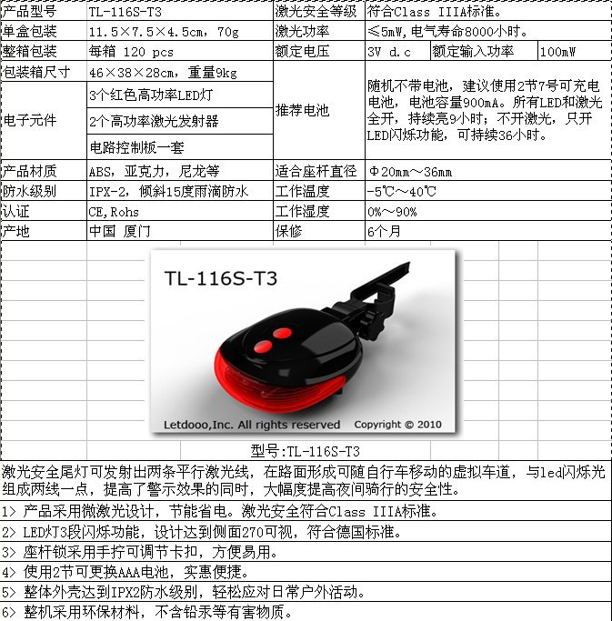 亮点:1.在尾灯的同时 增加了两条激光安全线,在你骑行的时候看上去很酷同时提高了警示效果