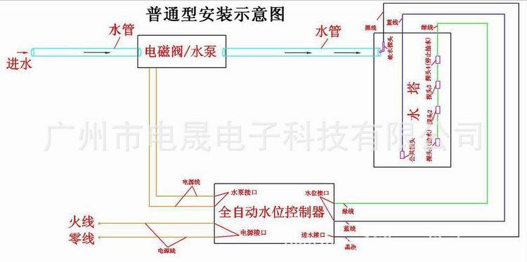 →安装简单,将电晟全自动水位控制器插入电源插座,水泵插在控制器上的插孔,水位设定,将高低水位探头放入水塔合适的高低水位位置,共用探头放入水塔水底,即可使用。