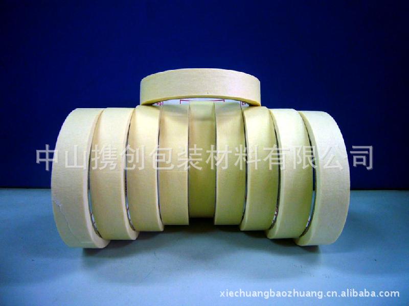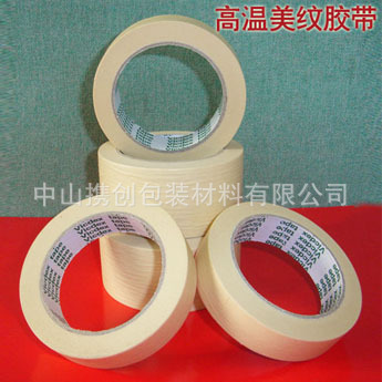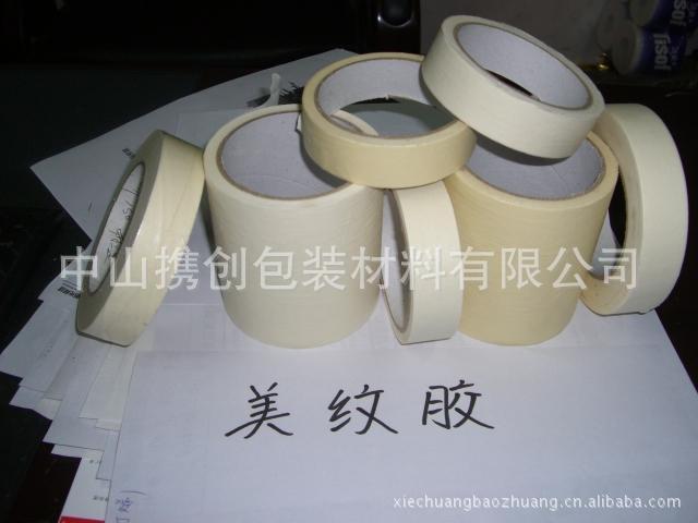 美纹纸胶带以高级美纹纸为基材,涂高粘度压敏胶制造而成.具有耐高温,耐溶剂,不易残胶等特性,适用于喷漆,烤漆,包装固定,封箱等.