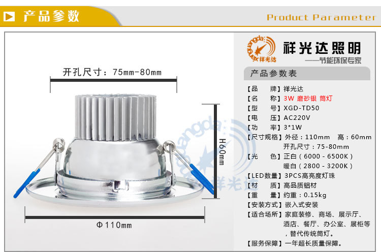 祥光达3W大功率LED筒灯节能灯防雾天花灯 XGD-TD50