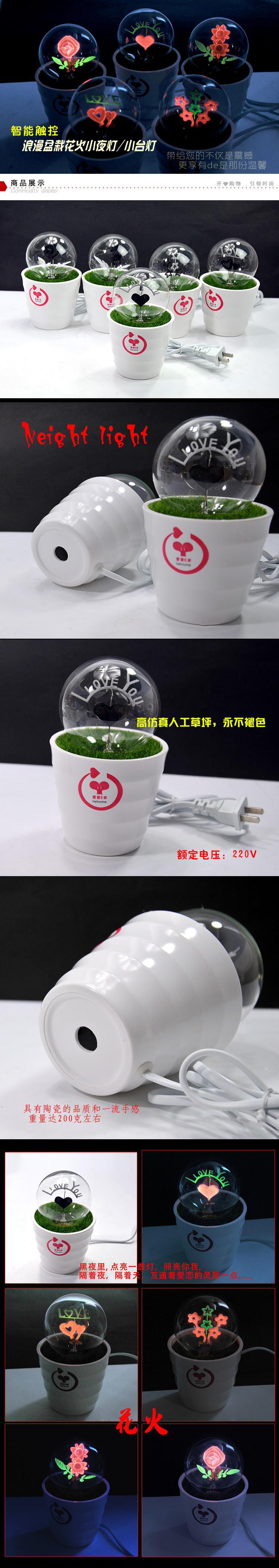 夏季温馨浪漫智能触控盆栽花火小夜灯