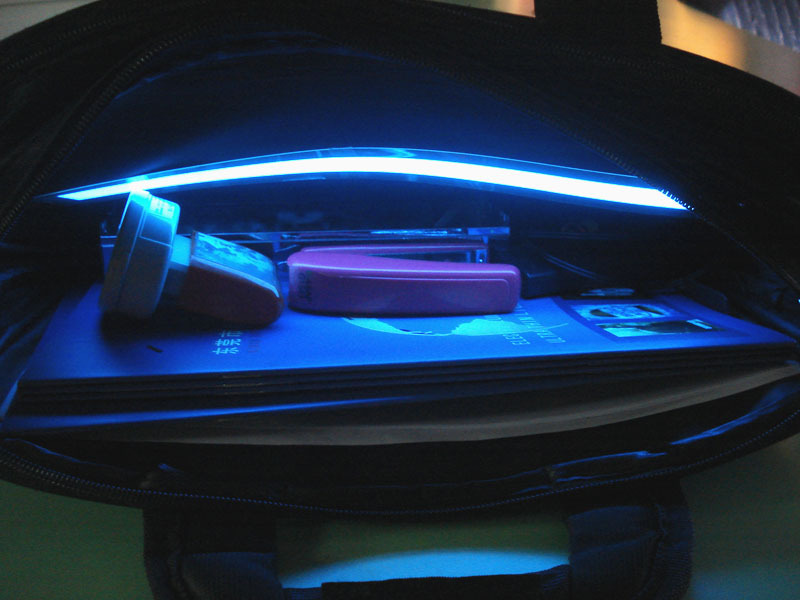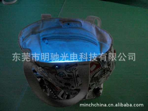 近期,在国外市场上流行一种发光包,常见于发光书包和发光背包这种发光包与普通书包、背包的不同之处在于,在发光包的正面、侧面、内部或者包带部位缝制了一种新型的柔性发光装饰材料,这个光源在通电时会发光并呈现出炫丽多彩的光效,不但能让自己的包包看起来更炫更酷,而且还可以起到比较实用的功能:1、在道路上可以引起行人和车辆驾驶人的注意,特别是夜晚有车流的地方,可以起到安全提示的作用,对于学生书包来说,这个功能更为显著;2、缝制在手提包或公文包的内部,当周围光线较暗的时候,这种光源可以起到照明的作用,打开包后光源会自动亮起,你在找包内物品时将变得更为容易,不再是黑灯瞎火、乱翻一通。这种新型的柔性发光装饰及照明材料将会越来越多的应用到书包,背包,手提包、公文包等产品上面。