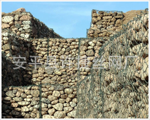 箱型石笼由大规格六角网联结而成,施工中只需将石块装入笼中封口即可。
