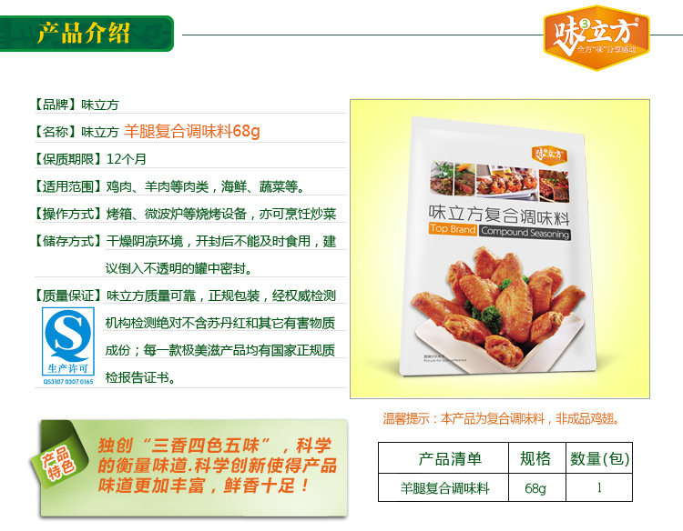 味立方 烤羊腿腌料 烤羊 烤全羊 羊腿肉 羊排 烤肉料 68g