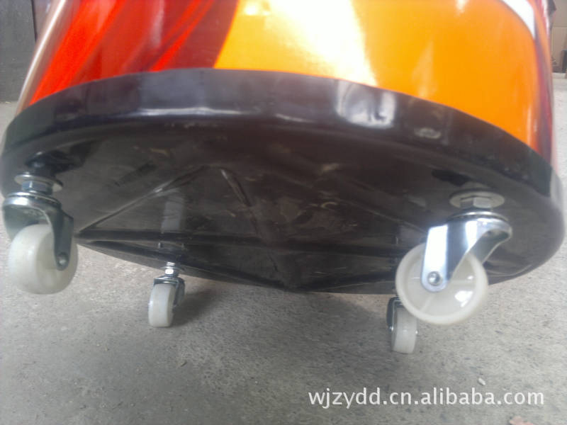 6.底部采用黑色加厚ABS材料制造而成,60L底部安装五个尼龙万向旋转轮,50L底部安装四个尼龙万向旋转轮,可旋转360度,便于推行方便。