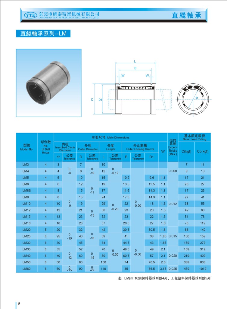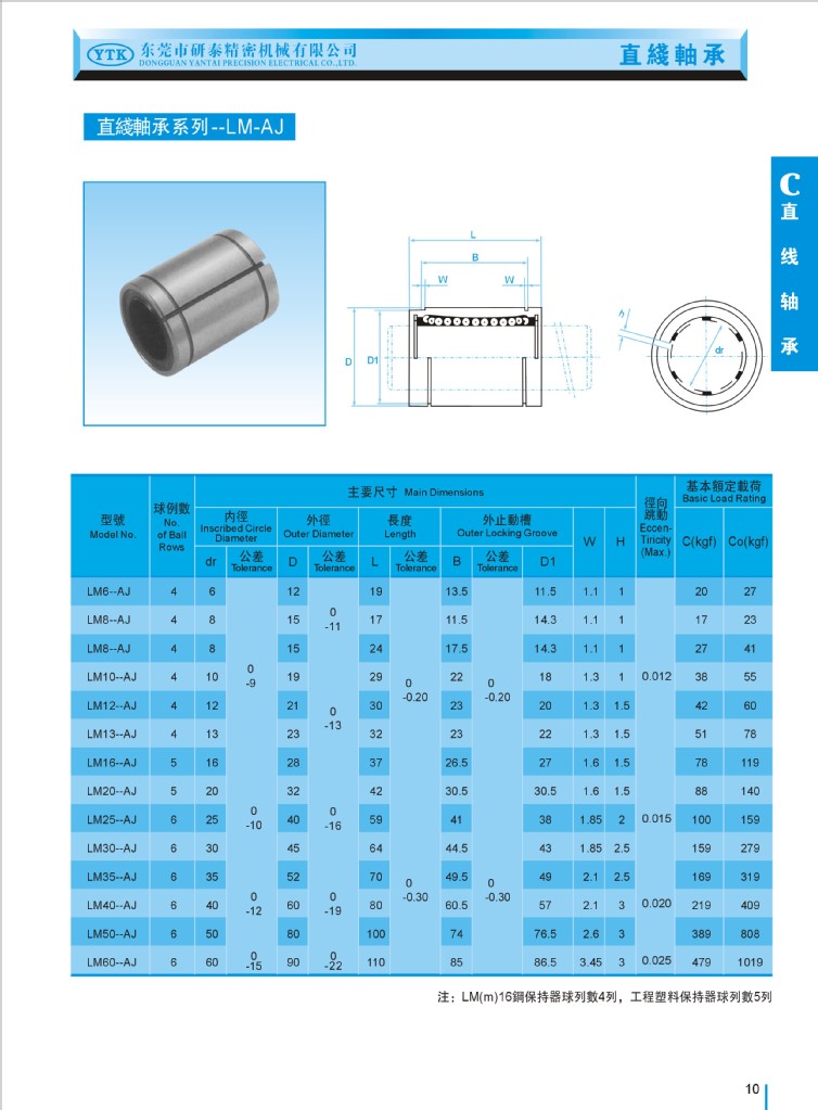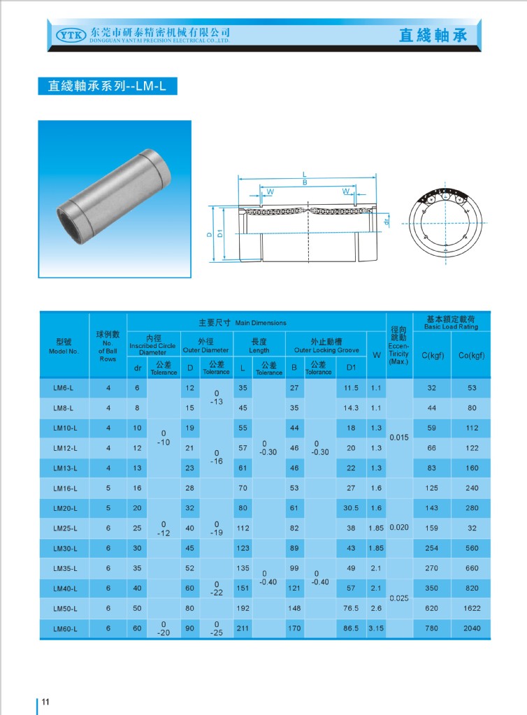 直线轴承批发,厂家网上直销,价格更有优势,质量更有保证!欢迎新老客户联系洽谈业务,此连接不是某种产品的单价,而是根据您所需产品总金额方便核算的连接。具体价格请咨询我们的客服人员.. 东莞市研泰精密机械有限公司是一家专业从事自动化的专业公司,主要产品来自台湾、南韩、日本、德国等国际精密机械产品知名品牌厂家.研泰公司主营自动化机械设备所必须的以直线运动系列产品为主的各种配件.包括;滚珠丝杆、镀铬棒、直线轴承、石墨及制品、直线导轨、滚珠丝杠 等机床附件产品.其中我司镀铬棒生产线于2004年8月正式投入生产,厂价直销. 研泰公司将秉承“质优、价廉、专业、高效、诚信”的经营理念!衷心希望能够得到与贵公司合作的机会!我们将最大努力为您降低成本!共创一个互利双赢的结局 !