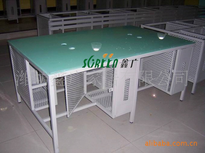 潍坊鑫广家居针对不同网吧的使用环境设计订做多种款式、不同档次的网吧桌、网吧专用桌、网吧电脑桌等网吧专用家具,设计偏重多功能的使用,力求于创造一个舒适的、环保的、健康的上网环境,引领网吧时代高速发展的潮流。公司有多种家具产品样式供您选择,可以按需求定。制规格、材质、颜色可自由选取。 产品信息:1、 基本信息:产品名称:网吧桌、电脑桌产品规格:常规产品种类:按需订做产品材料:板材:环保中纤板、颗粒板、防火板产品计价:具体面议2、 个性概要:办公、娱乐、学习3、 适用范围:适用于网吧、办公场所、商场大厦、私人空间