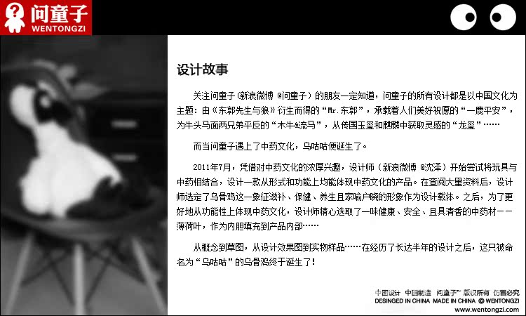 问童子团队致力于打造一个国内原创品牌。我们一直告诉自己坚持做我们喜欢做的事情,坚持我们做事情的原则。我们尽我们所能去做好每一件产品;想象着当这些东西摆在你前面的时候你喜悦的心情,和你能享受到的愉快心情。我们在努力的希望能得到大家的认可,坚持着不放弃。