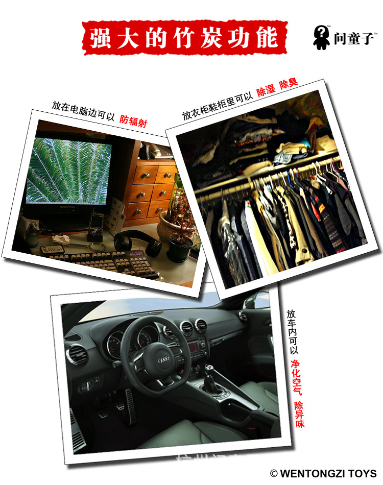 问童子竹炭系列产品是我们重点开发的产品,也是我们团队创建原创品牌围绕的核心。不管从外观设计上还是选材直至后期加工制作完成都注入了我们极大的心思。但是当我们看见我们努力设计出来的产品,很轻易被别人以粗糙的手段复制时,感觉特别难过。那些我们心里面感觉美好的东西瞬间被人践踏。