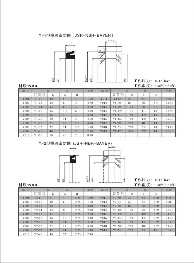 Y-1型气缸专用密封件