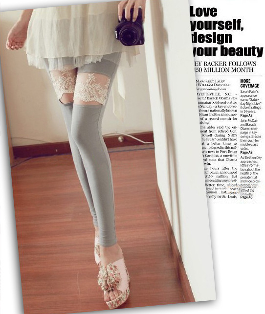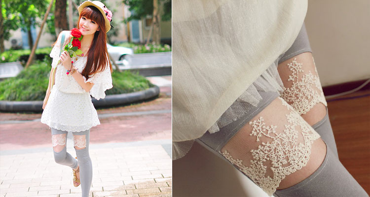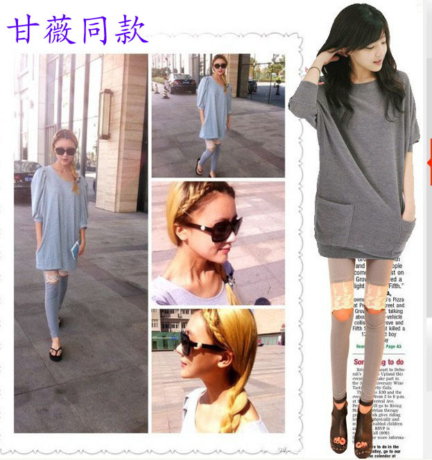 裤裆:22CM裤脚宽:20-34CM【宝贝描述】 今年超级流行破洞开口的打底裤哦,但在破洞的基础上加上蕾丝是比较少的, 所以这款裤子还是比较独特的,蕾丝给人甜美可爱的感觉, 开口破洞个性十足,此款KK上身效果不错,比较显瘦,料子也可以~~