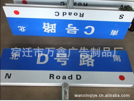 宿迁市万鑫广告制品厂是标准路,标准指路牌,标准地,标准道路指示牌是指路牌、路、公路路、城市路、不锈钢路、LED灯箱路、玻璃钢路、多方向路、上海路、南京路、常州路、天津路等产品开发,设计,制作,安装专业生产加工的私营独资企业,公司总部设在江苏省宿迁市,宿迁市万鑫广告制品厂拥有完整、科学的质量管理体系。宿迁万鑫广告制品厂的诚信、实力和产品质量获得业界的认可。欢迎各界朋友莅临宿迁万鑫广告制品厂参观、指导和业务洽谈。江苏宿迁市万鑫广告制品厂推出的第四代新型标准路,标准指路牌,标准地,标准道路指示牌因美观大方,标识醒目,增加了门牌号段功能,上市深受广大民众欢迎,继被全国各地市政选中后,近日又被天津客户选中,近日将签订生产供货合同.