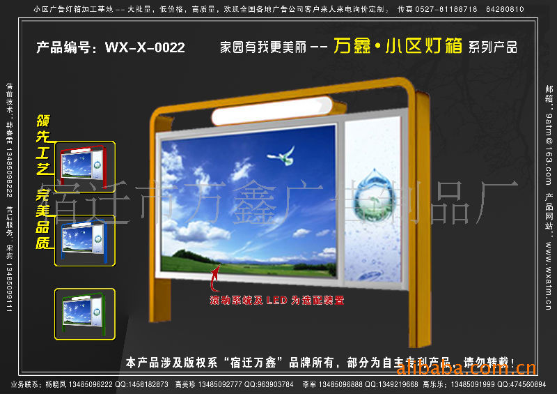 我厂是专业生产万鑫系列多画面广告擦鞋机,换画灯箱的企业。为了迅速拓展全国各地区空白市场,现以工厂最低价格,地县级城市千元就能做代理\客户零库存的营销方针诚招全国各地区独家代理商。火速预留市场! 欢迎各界朋友来人来电洽谈合作方式。省会级城市另商谈!寻找四川、吉林、内蒙古、黑龙江、贵州、辽宁、新疆、省级合作伙伴!\ 我厂研制的全自动换画广告擦鞋机已投入市场,该机告别了传统擦鞋机所使用的模拟电路控制系统而采用数字电路系统,外观的改进、功能的不断更新与完善,以崭新的面貌面对消费者,它不公能令人足下生辉外,还可以一次储存2-15幅不同的广告灯片,可以自动顺序往返,自动定时定格,画面可随意接接,更换等,这种新颖独特的灯箱广告擦鞋机推出后,受到了各阶层消费者和众多广告公司、大型商场、超市、宾馆的青睐。在商场摆放本产品后,每天有众多人来免费擦皮鞋,客流量大暗。摆上全自动广告擦鞋机,不但无形中提高了服务档次,还带来了更多的回头客。 自动换画广告擦鞋是一种全新的亲情型广告载体,它巧妙利用换画广告灯箱所附属擦鞋机的这一独特功能与消费者情感广告相结合起来,引起了消费者的共鸣,所以容易能使广告(客户)认可和接受。 *多种规格和外观设计,可供不同的客户选择(多种外壳材料,多种颜色选择) 适合各类环境的密封机箱设计(防水,防尘,抗静电,薄型机箱) *机壳、机芯分离及减振、降噪设计 精密传动机构,运行平稳可靠 *内置保护装置,避免损伤画布 *无易耗件,增强耐用性,减少维护工作活动的广告画面在吸引视线、接收信息方面比静止的广告画面强60倍左右。 灯箱广告片容量2-16幅,每2秒-60秒更换一幅画面,画面展示时间任意调校。 广告片可以设定为纵向、横向方式走片