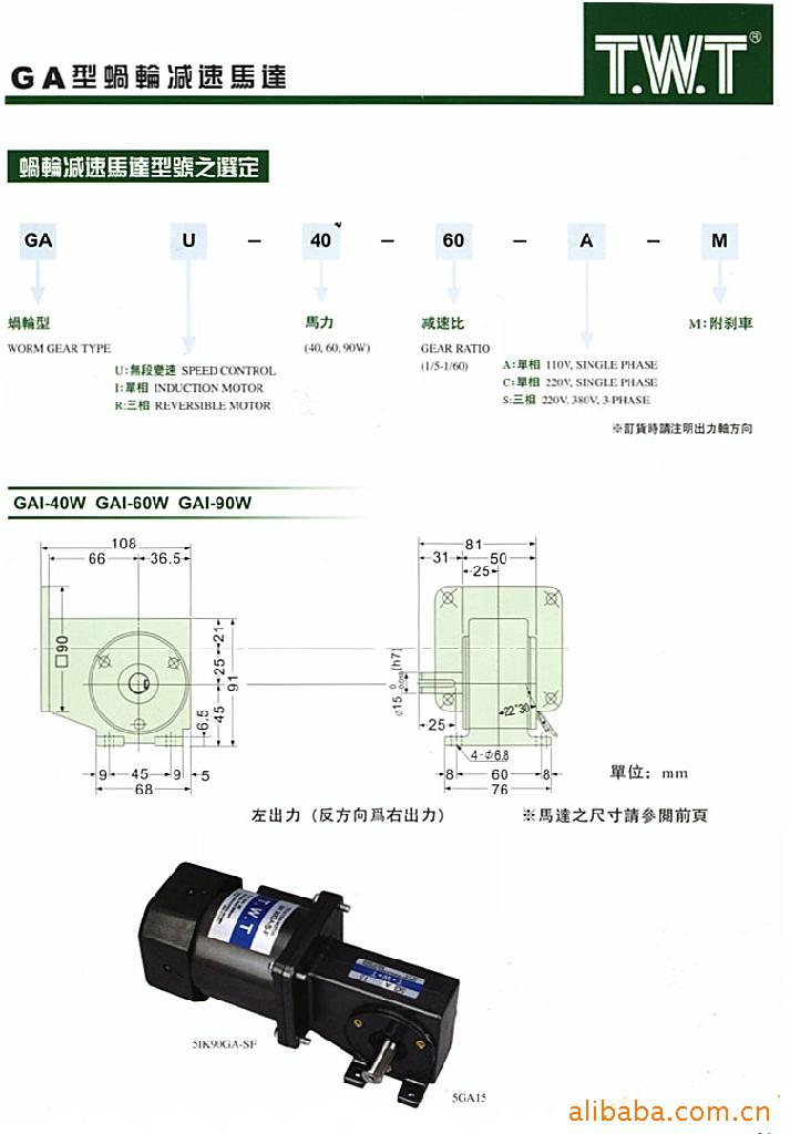 TWT东炜庭电机工业生产的东炜庭蜗轮减速电机,东炜庭蜗轮调速电机,东炜庭蜗轮刹车电机产品通过ICO,,CE认证。TWT东炜庭蜗轮减速机又名侧边电机根据客户的订做。产品分为单相电压110V220V,三相电压220V380V440V,安装方式左,右出力,双出力。欢迎来电咨询!13020201166