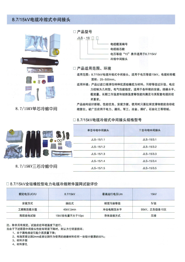 8.7/15KV电缆冷缩中间接头 10KV冷缩三芯中间接头 JLSY-10/3.2