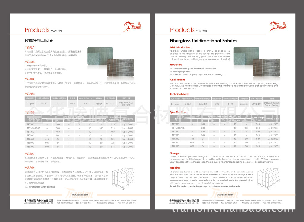 单向布是只使用0度或90度方向的无捻粗纱,经聚酯线捆绑缝编而成的玻璃纤维布(0度单向布需以玻纤纱间隔衬纬)。